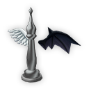 天使と悪魔の羽根が飾られた柱