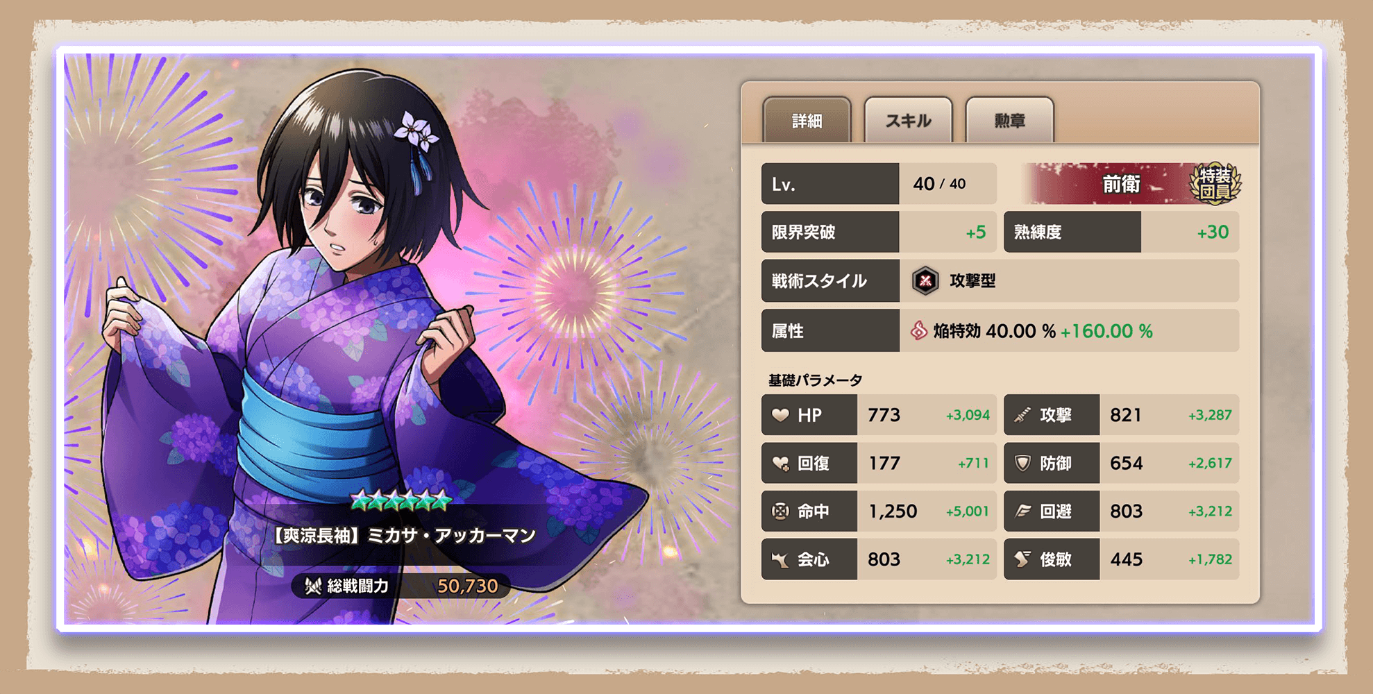 ミカサは全ての技巧スキルがダメージを与える、超攻撃的な前衛団員だ!