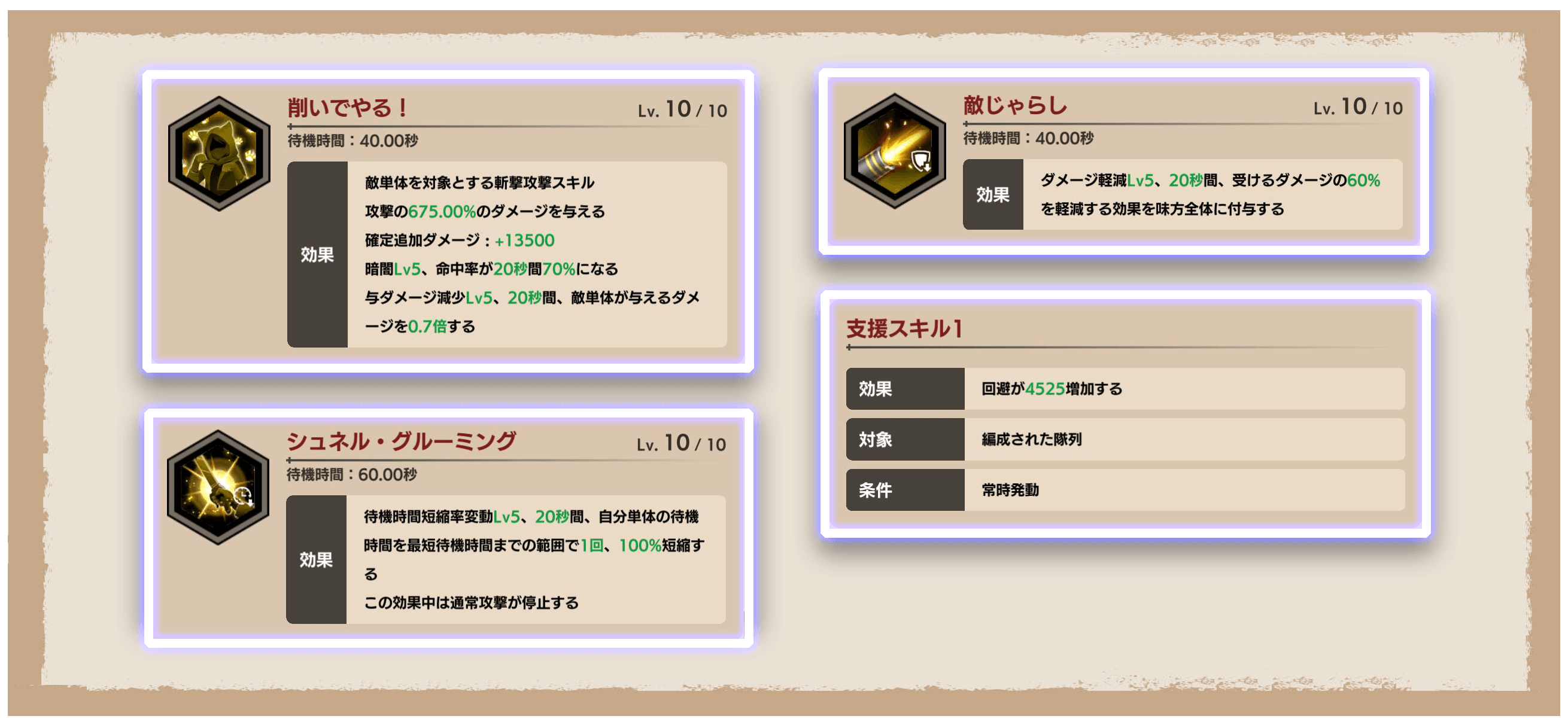 ※「シュネル・グルーミング」の短縮効果は、1回効果が発揮されると消費されます。