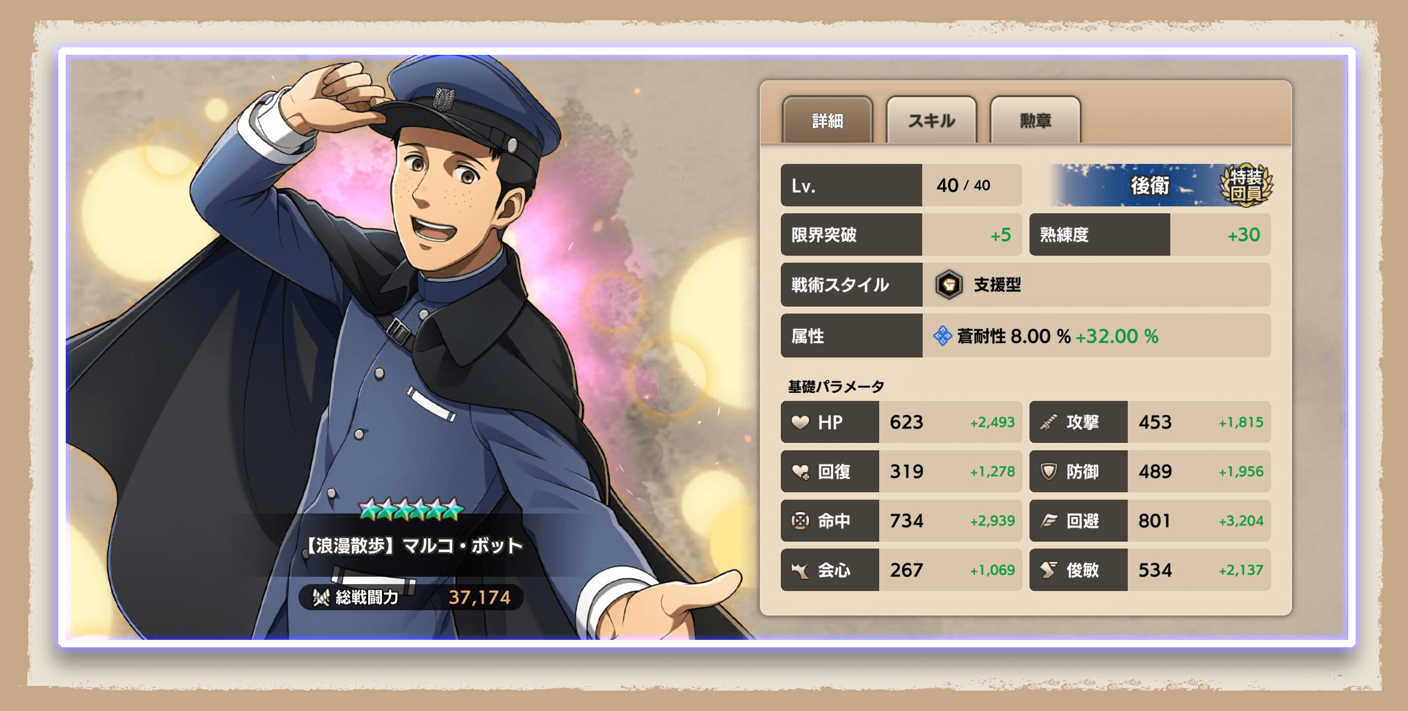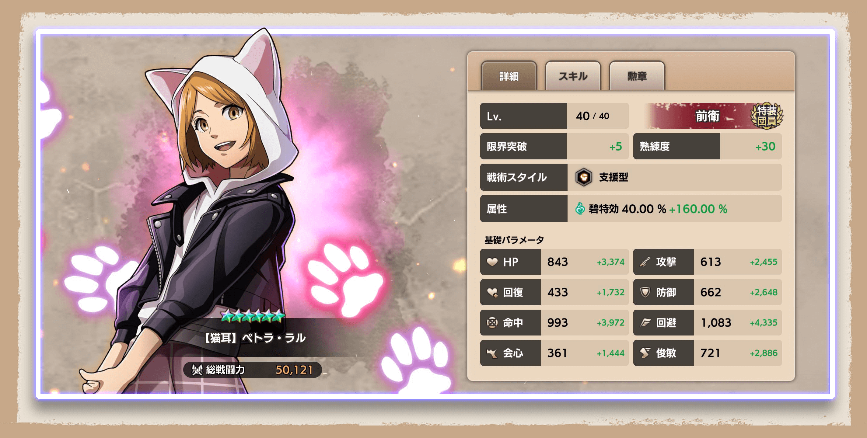 ※各パラメータはレアリティ★6、限界突破(5段階)、Lv.MAX、熟練度+30時のものです。