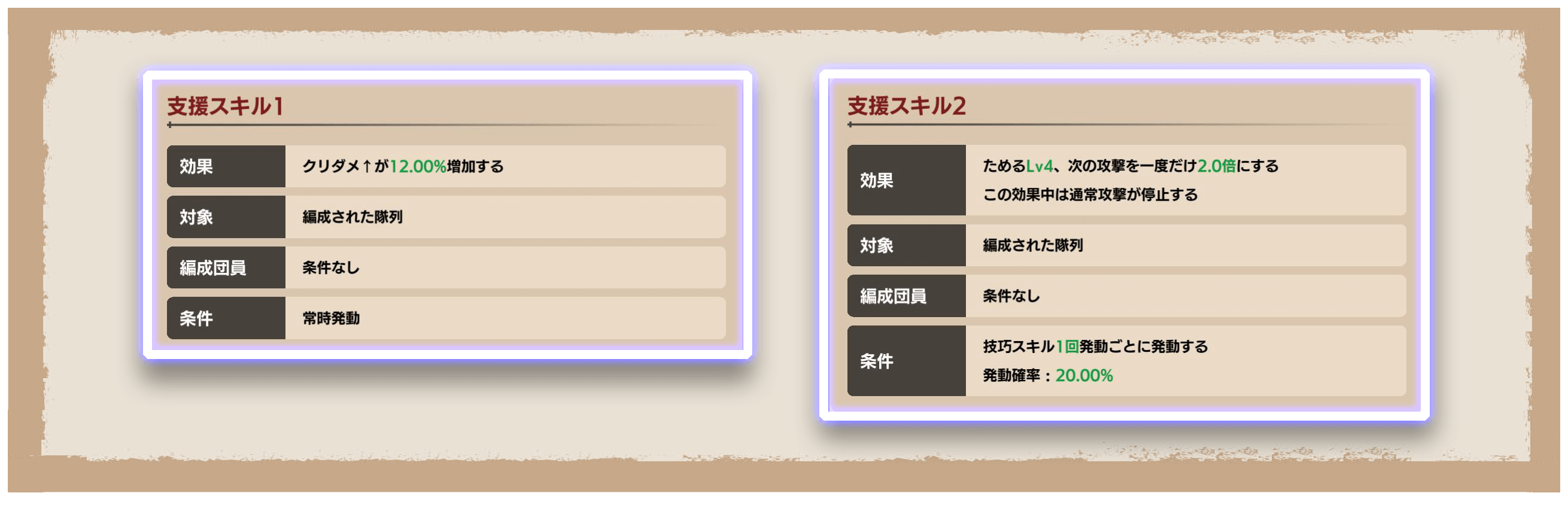 技巧スキル/支援スキル