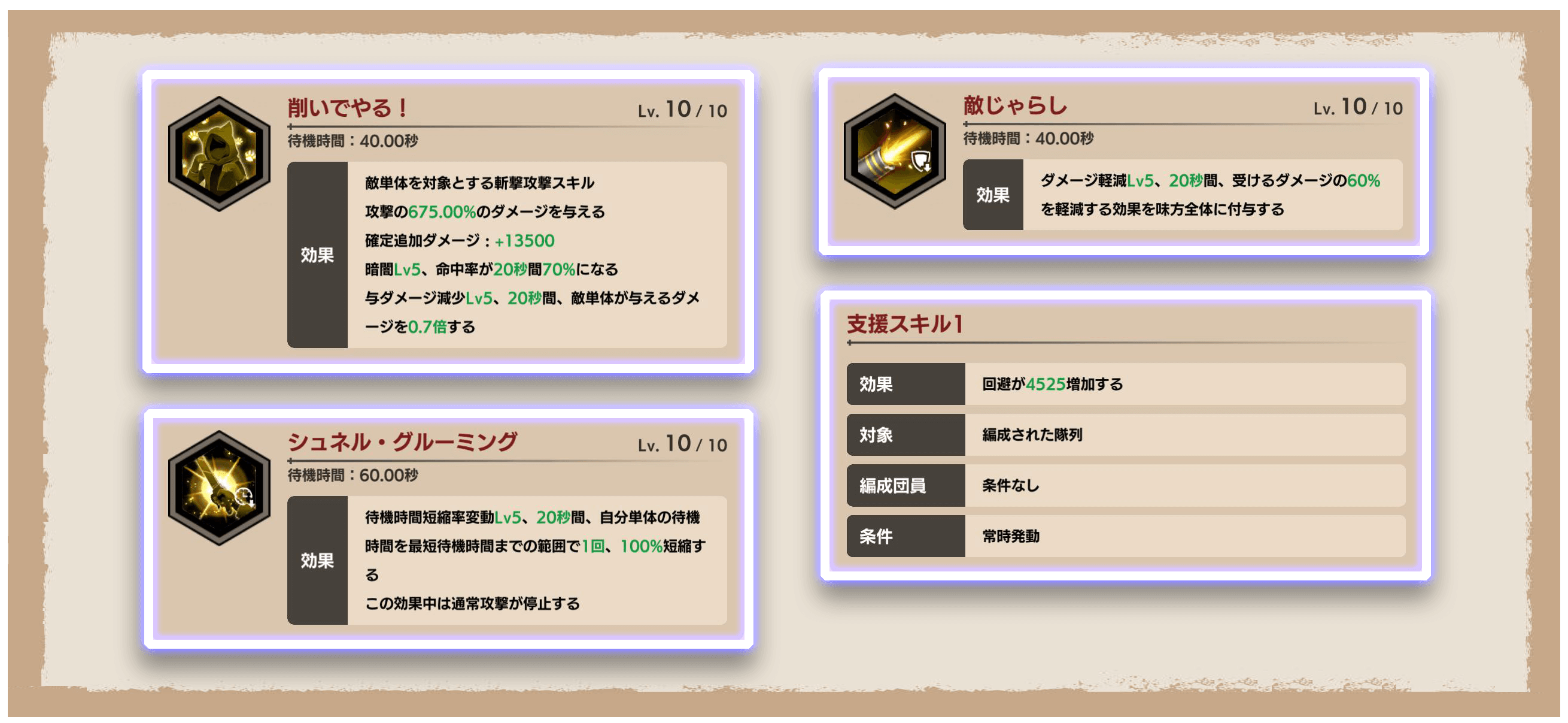 ※「シュネル・グルーミング」の短縮効果は、1回効果が発揮されると消費されます。